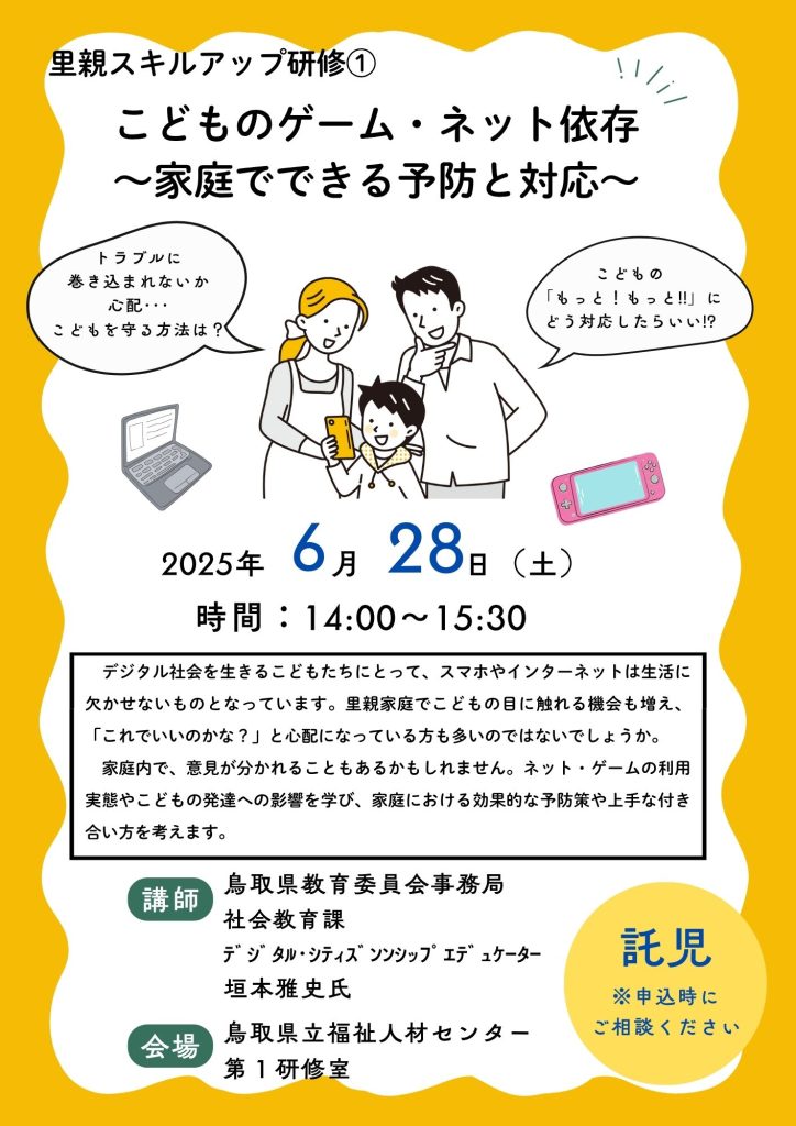 小学校高学年以上のお子さんは一緒に参加していただけます。皆さん悩まれるテーマかと思いますので、ぜひご参加ください。
