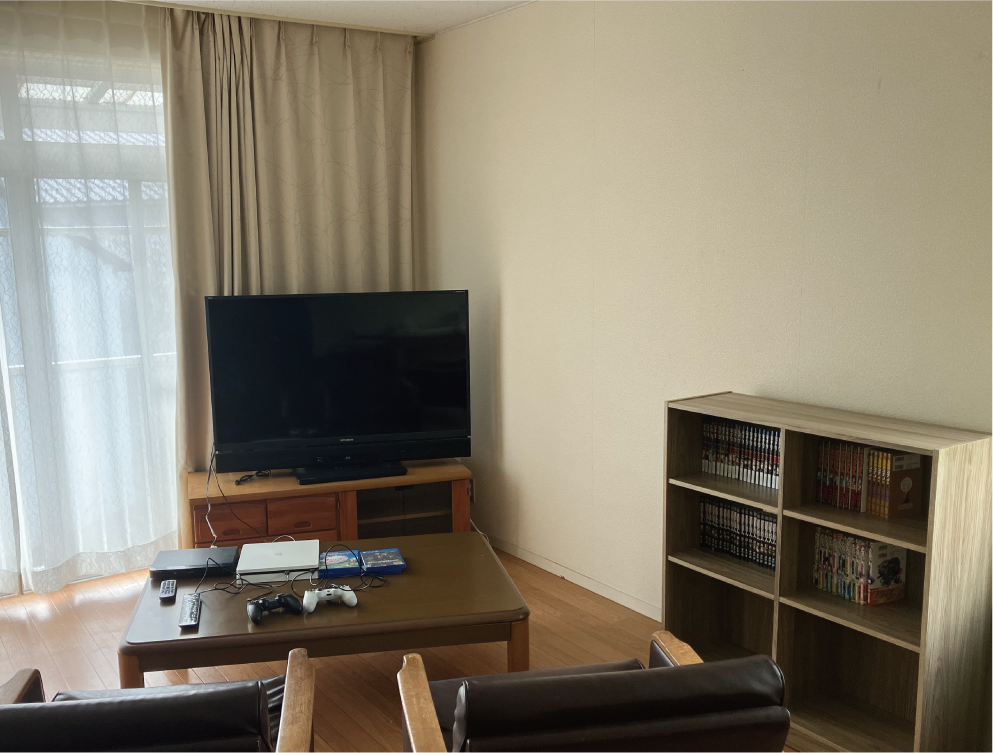 ゲームや漫画やDVDなどを置き、一緒に楽しい時間を共有しながら、色々な話をしながら、今後の事などが、気軽に相談出来るスペースも設けています。
